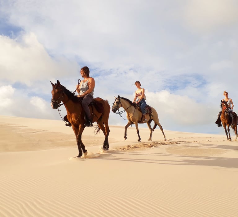 Cavalgada nas dunas: A atividade é realizada em meio período e pelas dunas e lagoas mais próximas do vilarejo (variam de acordo coma época do ano). A imersão e contato com a natureza promovem uma experiência única e indescritível.
